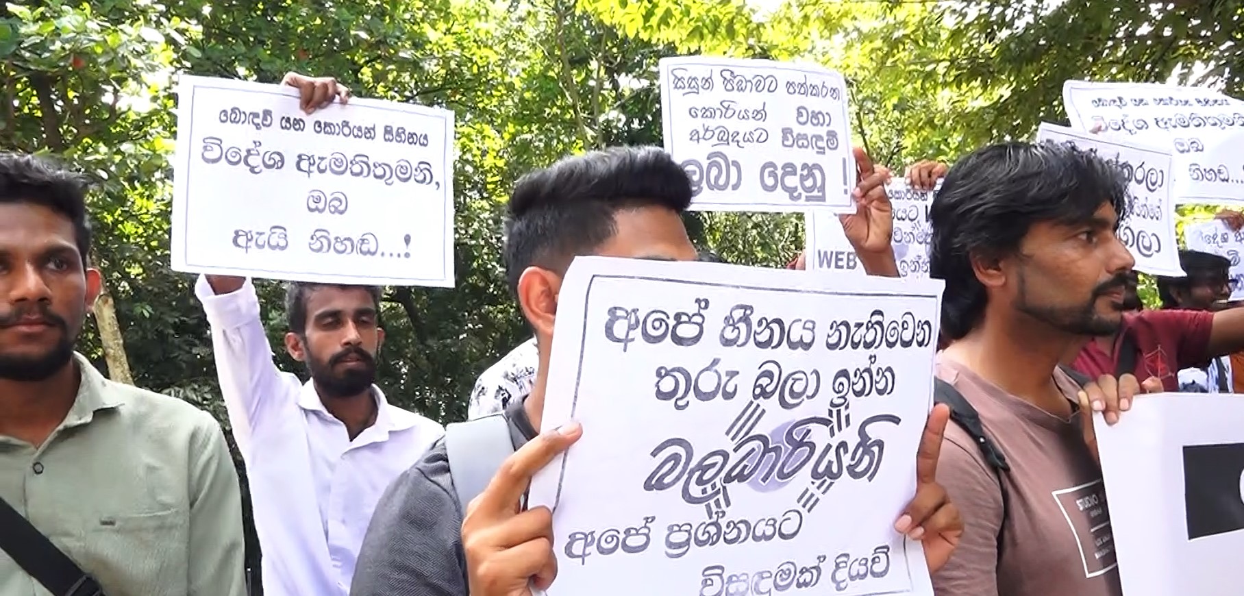 ” බොඳ වී යන කොරියන් සිහිනයට ” වාහම විසඳුමක් ලබා දෙන්නයි තරුණ , තරුණියන් පිරිසක් විදේශ සේවා නියුක්ති කාර්යාංශය ඉදිරිපිට අද (19) උද්ඝෝෂණයක නිරත වුණා.