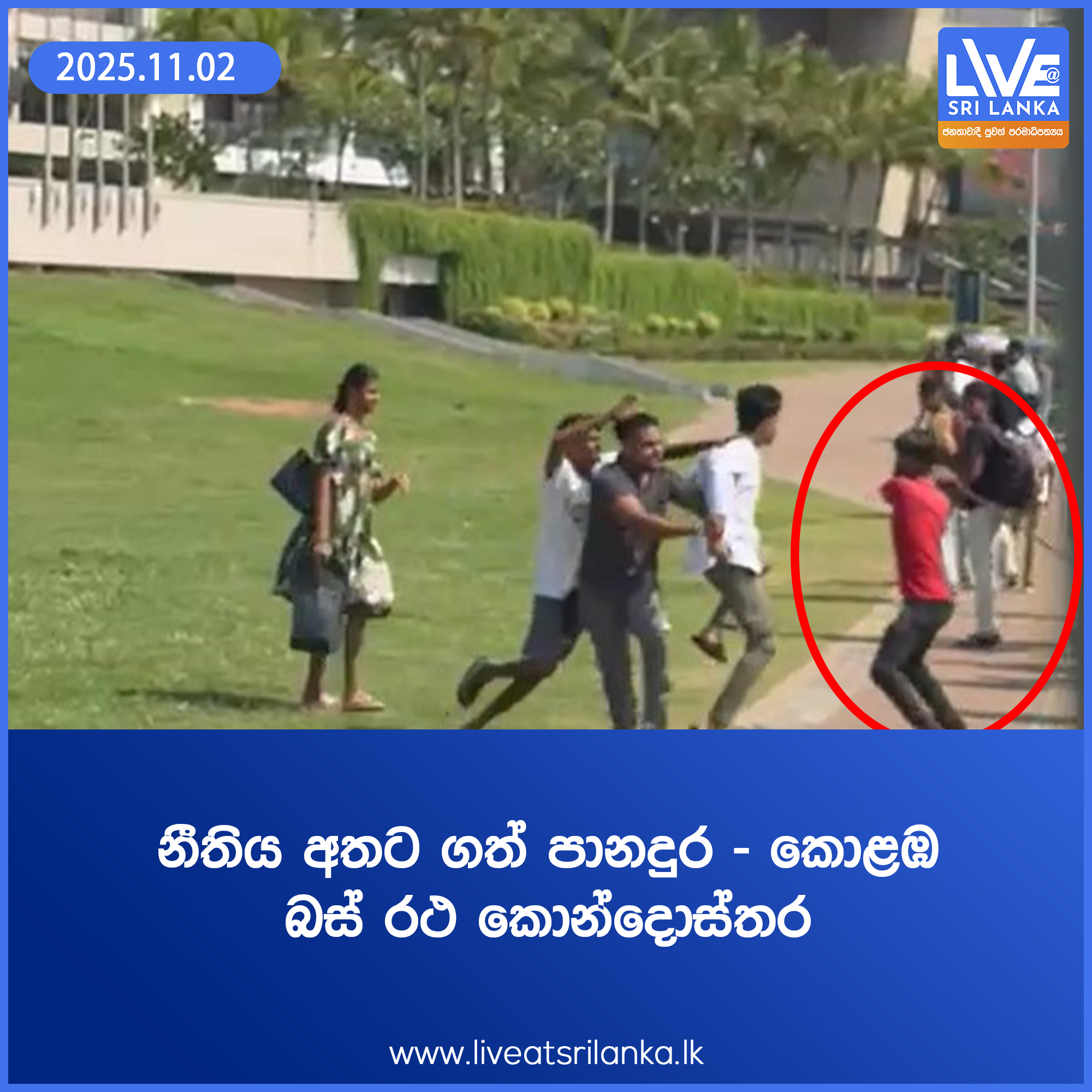 කොටුව පොලිස් වසමේ ගාලු මුවදොර ප්රදේශයේ දී කොළඹ – පානදුර පුද්ගලික බස් රථයක කොන්දොස්තරවරයකු සහ ඔහුගේ මිතුරකු බස් රථයේ ගමන්ගත් මගියකුට පොල්ලකින් පහර දෙන සිද්ධියක් අප පෙරේදා (02) වාර්තා කළා.