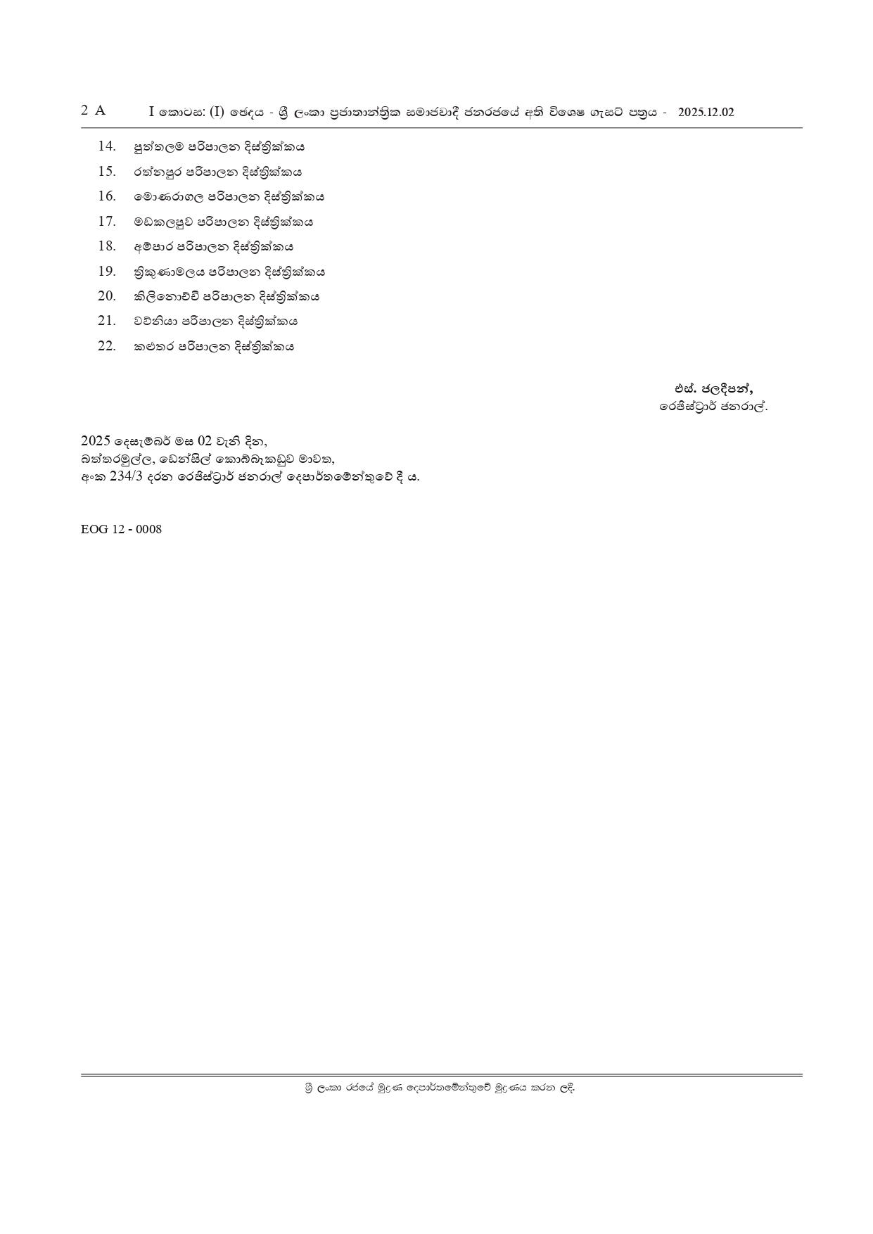 ” ජාතික ව්යසන පාත්ර ප්රදේශ” නම් කරමින් දිට්වා සුළි කුණාටුවෙන් ව්යසනයට පත් දිස්ත්රික්ක 22 ක් අති විශේෂ ගැසට් පත්රයකින් ප්රකාශයට පත් කර තිබෙනවා.