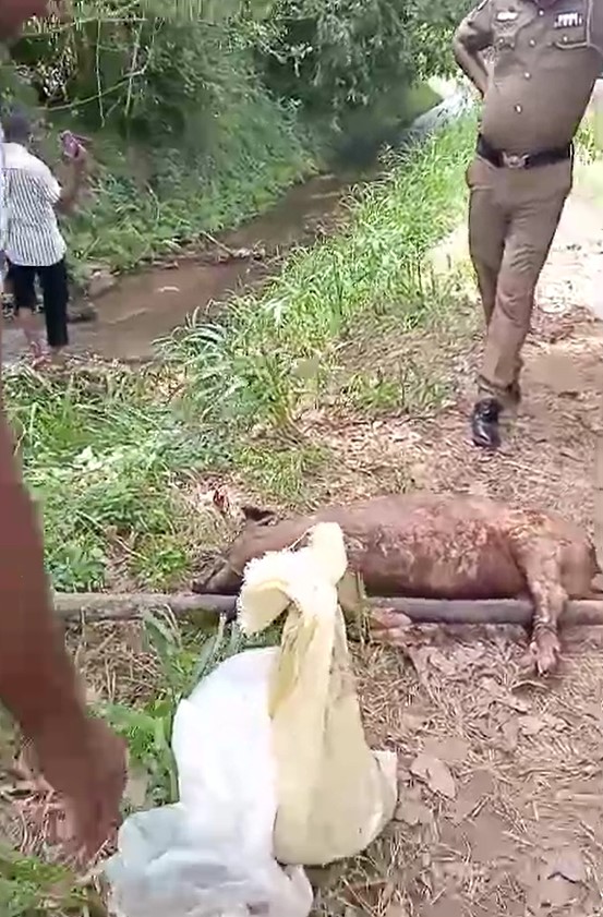 සැකකරුවන් සතුව තිබූ ඌරු මස් කිලෝ ග්රෑම් 30 ක් සහ මරා කුඹුරක වළදමා තිබූ ඌරාද පොලීසිය සොයාගෙන තිබෙනවා.