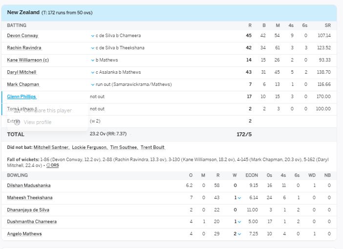 අනතුරුව ලකුණු 172ක ජයග්රාහී ඉලක්කය හඹා ගිය නවසීලන්ත කණ්ඩායම පන්දුවාර 23යි පන්දු 2ක් තුළ කඩුලු 5ක් පමණක් දැවී ජයග්රහණය වාර්තා කළා.