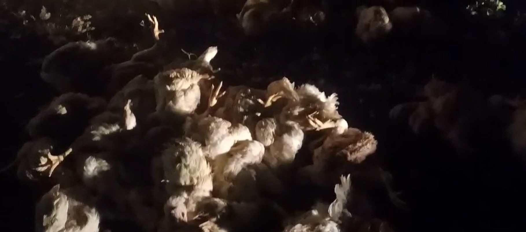 පණපිටින් සිටි කුකුළන් මාර්ගය පුරා වැටී සිටියා.