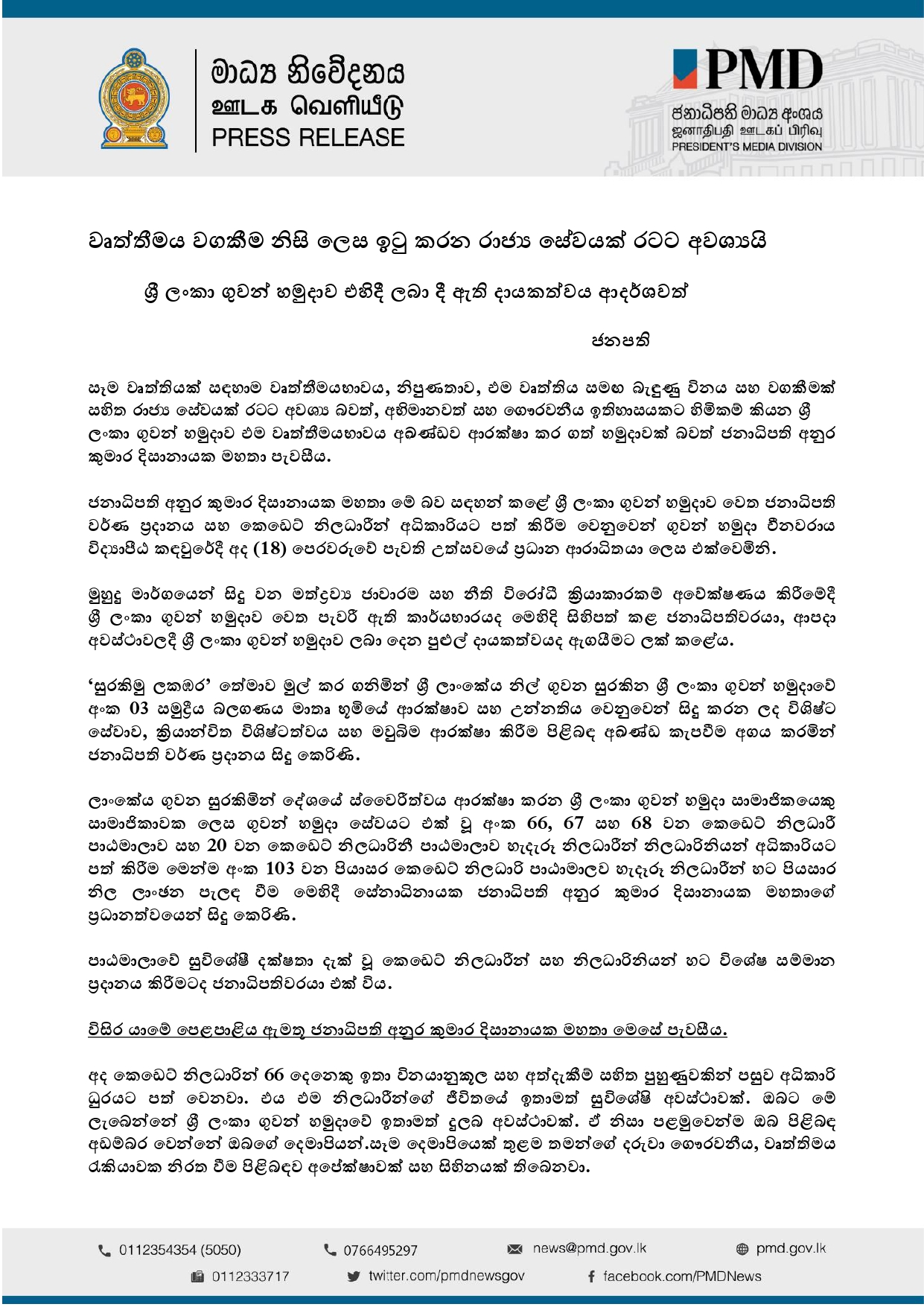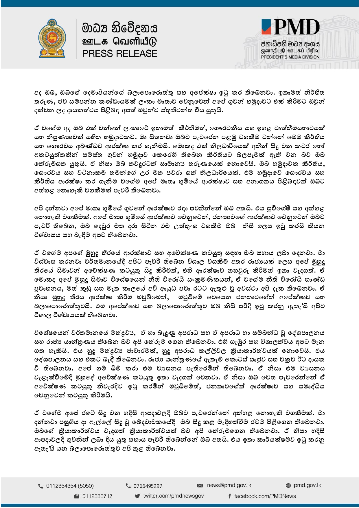 ජනාධිපතිවරයා මේ අදහස් පළ කළේ ශ්‍රී ලංකා ගුවන් හමුදාව වෙත ජනාධිපති වර්ණ ප්‍රධානය සහ කෙඩෙට් නිලධාරීන් අධිකාරියට පත් කිරීම වෙනුවෙන් අද(18) ගුවන් හමුදා චීන වරාය විද්‍යා පීඨ කඳවුරේ දී අද පැවති උත්සවයට ප්‍රධාන ආරාධිතයා ලෙස සහභාගී වෙමින්.