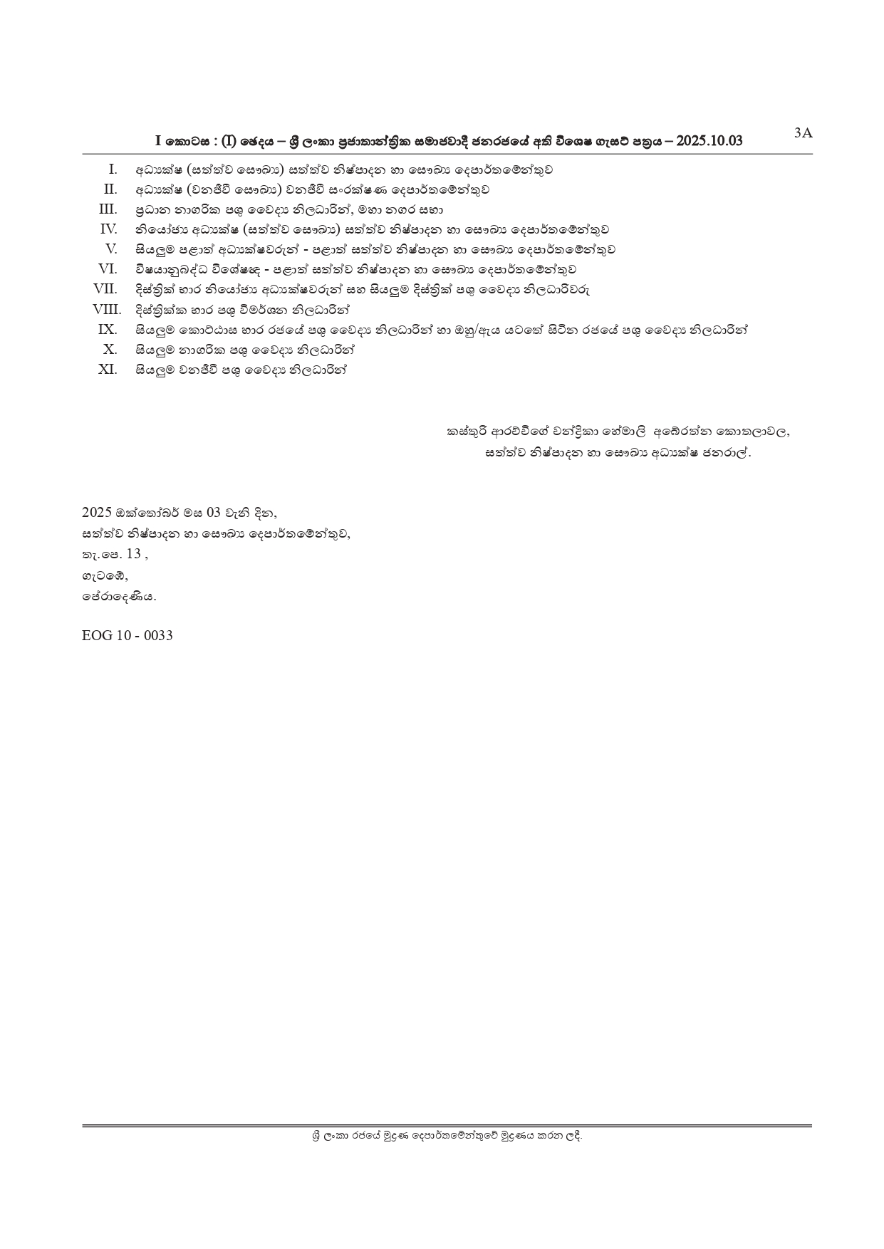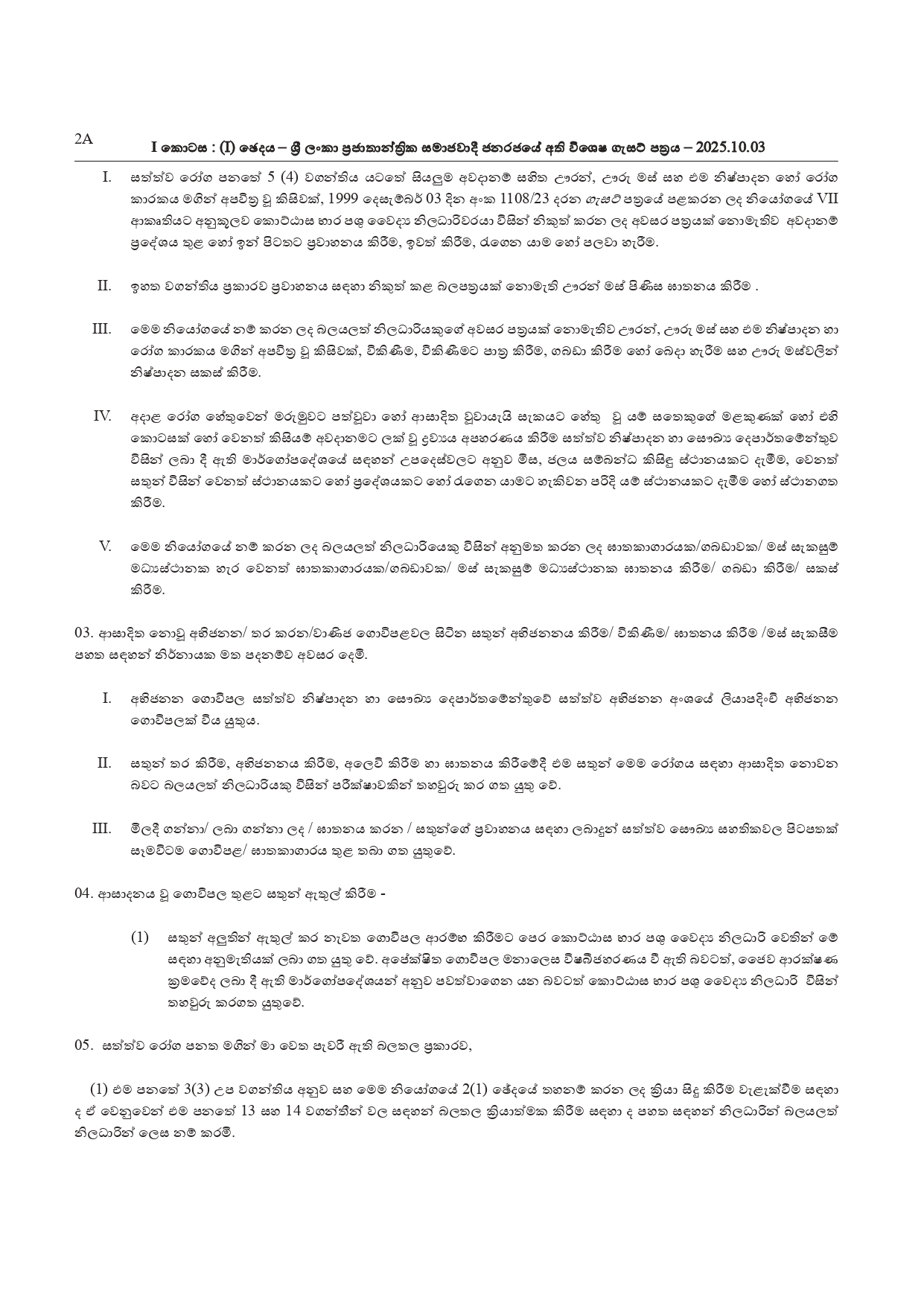 මෙම අති විශේෂ ගැසට් නිවේදනය නිකුත් කර ඇත්තේ පසුගිය 03 වැනිදා සිටයි.