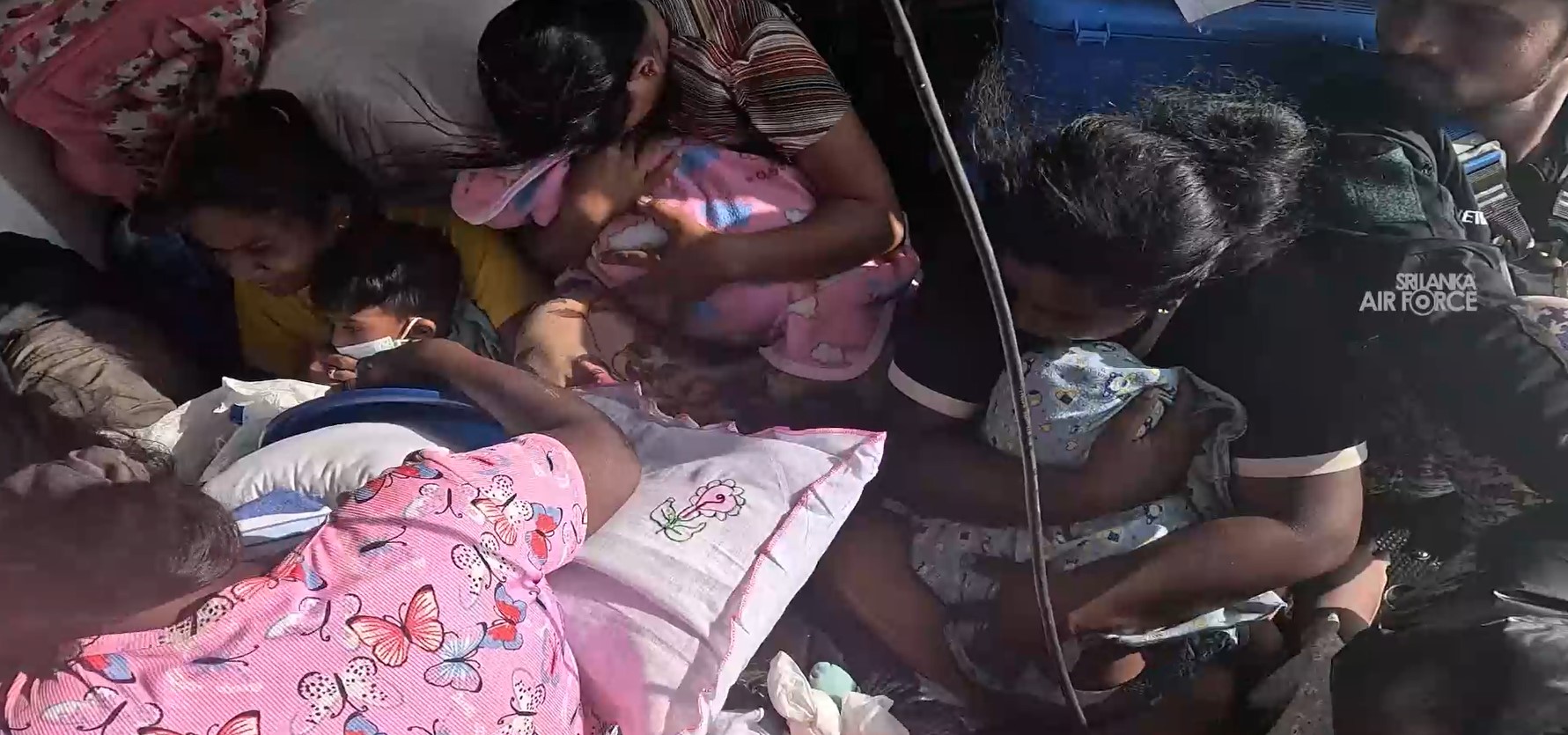 හලාවත මූලික රෝහලේ සිටි මව්වරුන් සහ බිළිඳු දරුවන් පිරිසක් ගුවනින් පුත්තලමට