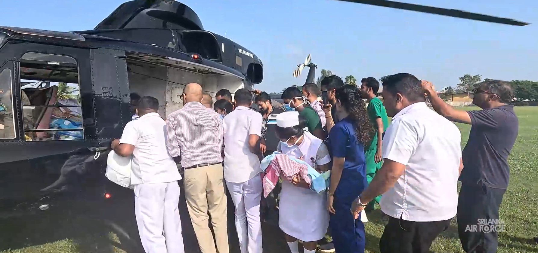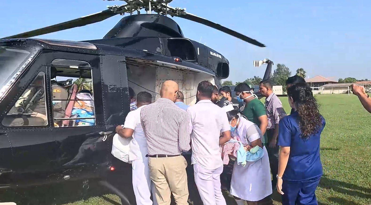 ආරක්ෂිත රැගෙන එනු ලැබුවේ රත්මලාන 04 වන බලඝනයට අයත් Bell–412 හෙලිකොප්ටර් යානය මගින්.
