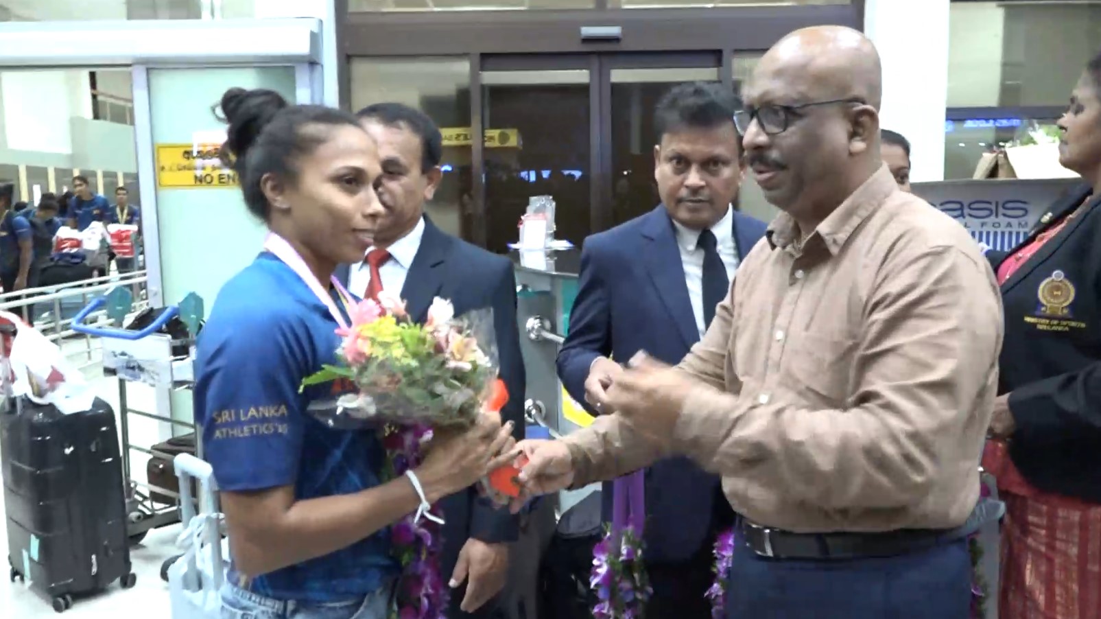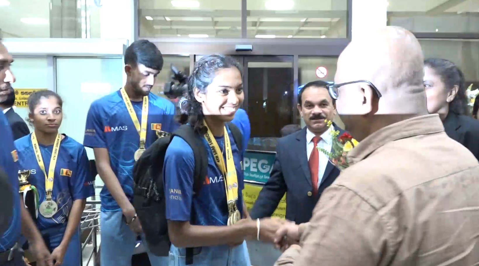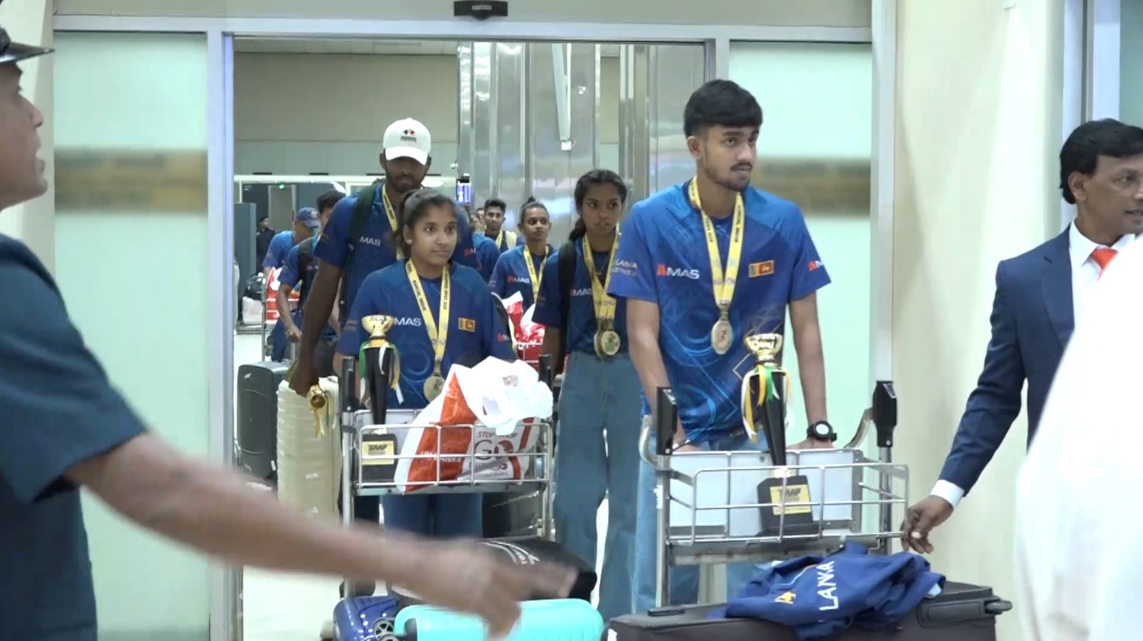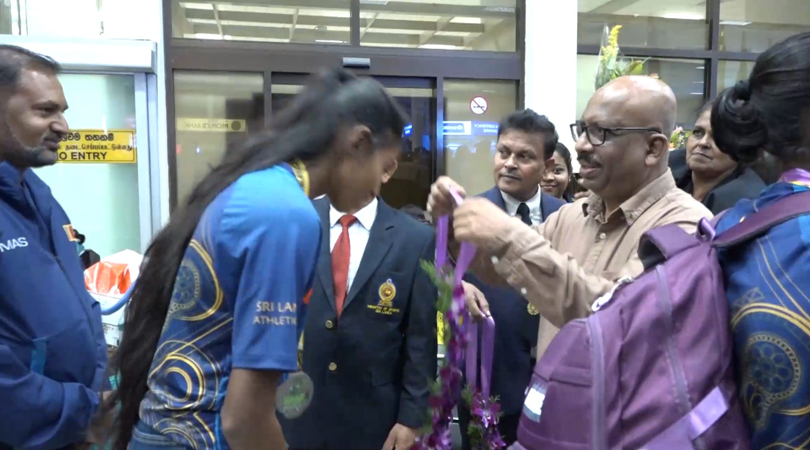 ශ්රී ලංකා කණ්ඩායම පිළිගැනීම සඳහා ක්රීඩා අමාත්ය සුනිල් කුමාර ගමගේ මහතාද කටුනායක ගුවන්තොටුපොළ වෙත පැමිණ සිටි අතර ජයග්රාහී කණ්ඩායම ඇමතිවරයා පිළිගත්තේ මල් මාලා පළඳවමින්.