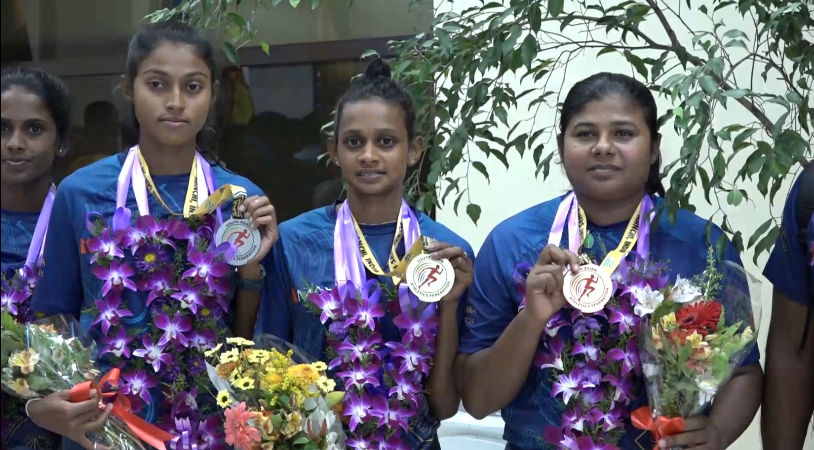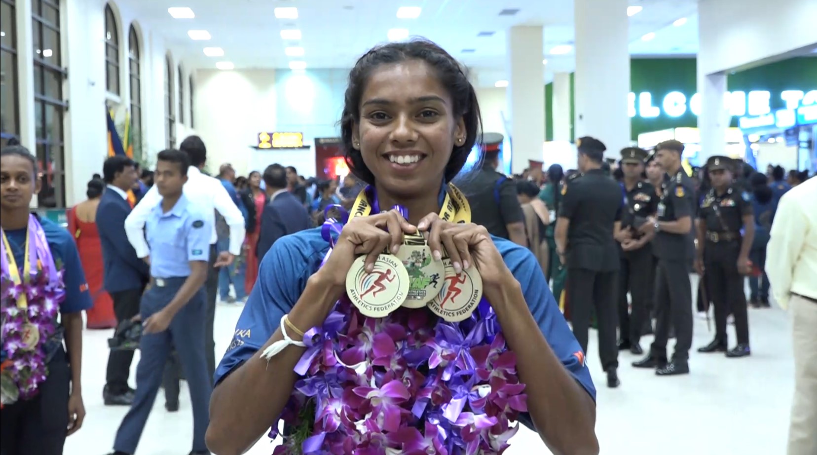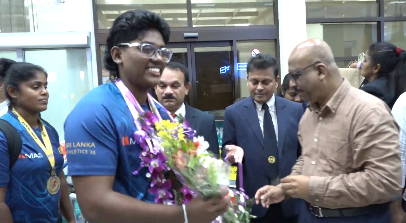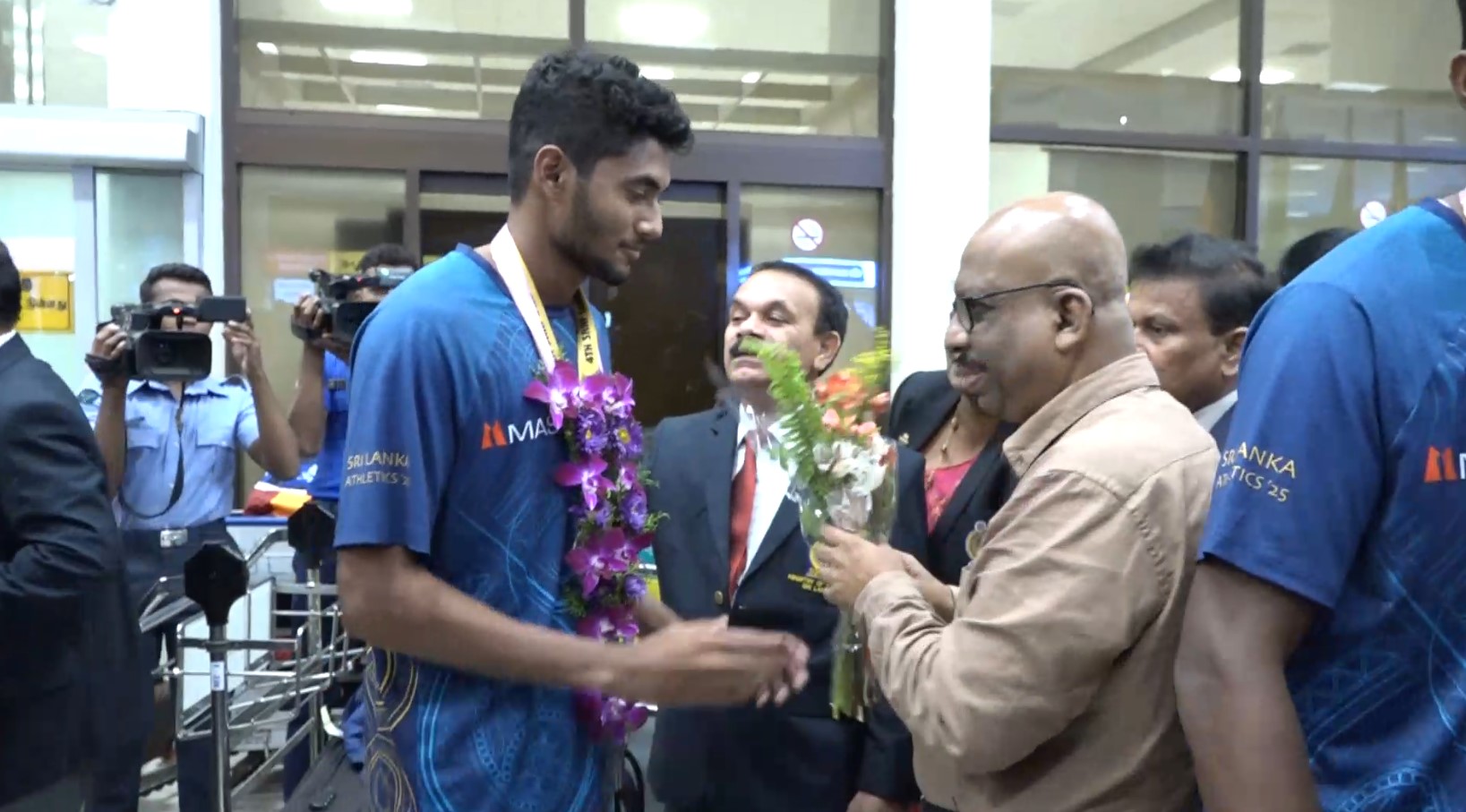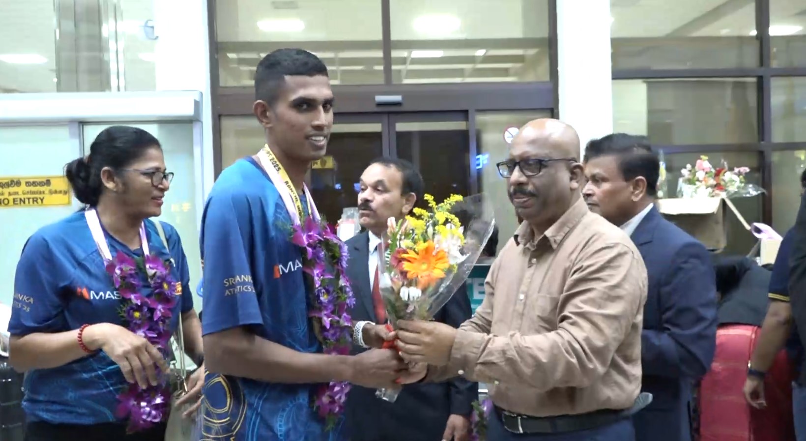 ශ්රී ලංකා කණ්ඩායම පිළිගැනීම සඳහා ක්රීඩා අමාත්ය සුනිල් කුමාර ගමගේ මහතාද කටුනායක ගුවන්තොටුපොළ වෙත පැමිණ සිටි අතර ජයග්රාහී කණ්ඩායම ඇමතිවරයා පිළිගත්තේ මල් මාලා පළඳවමින්.