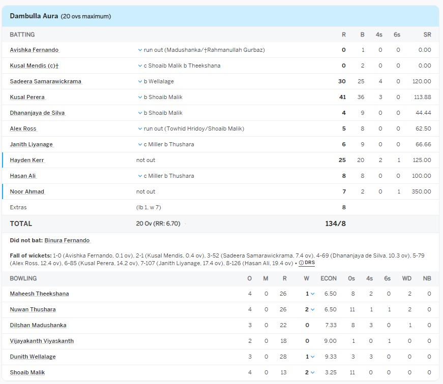 ලංකා ප්රිමියර් ලීග් තරගාවලියේ 11වන තරගයේ පළමුව පන්දුවට පහර දුන් Dambulla Aura කණ්ඩායම ලකුණු 134ක් රැස් කළා.